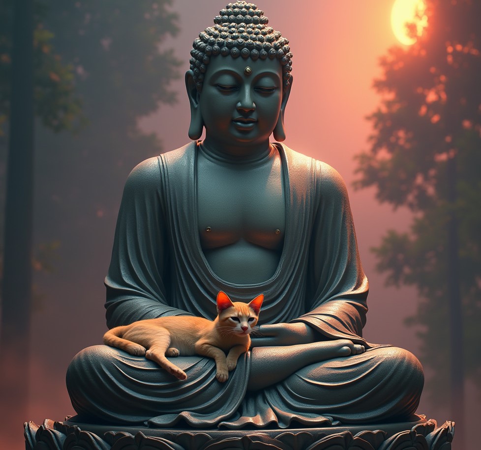 like a cat on Buddha’s lap